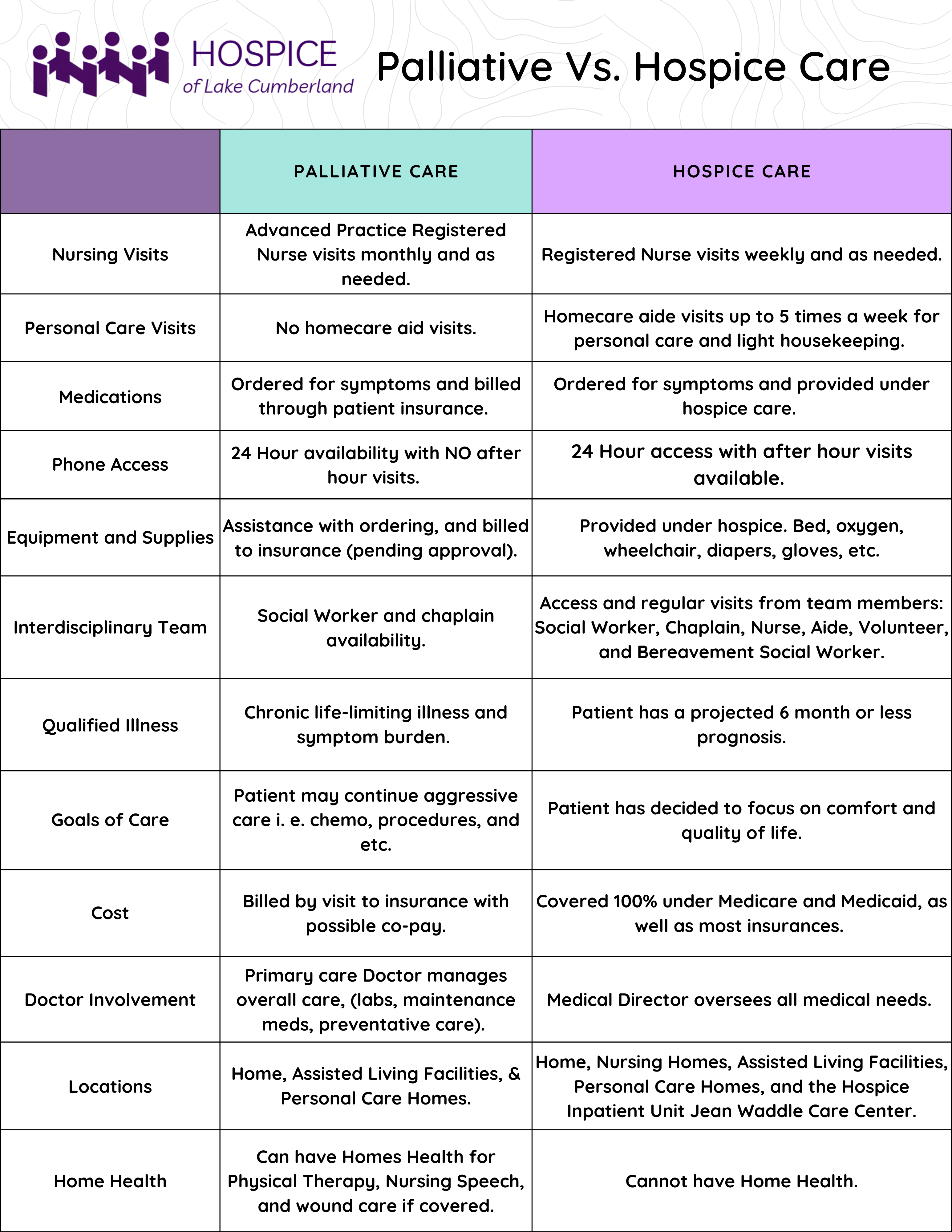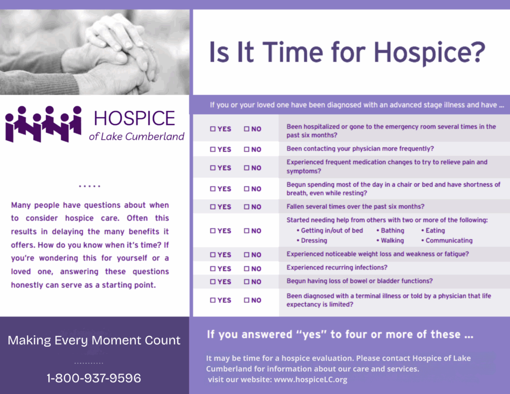 Hospice of Lake Cumberland and Palliative Care of Lake Cumberland serve the counties of Pulaski, Russell, Wayne, McCreary, Casey, Clinton, and Cumberland in south-central Kentucky.